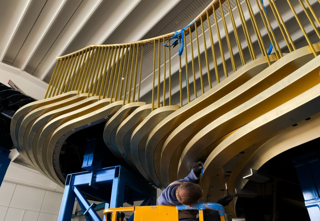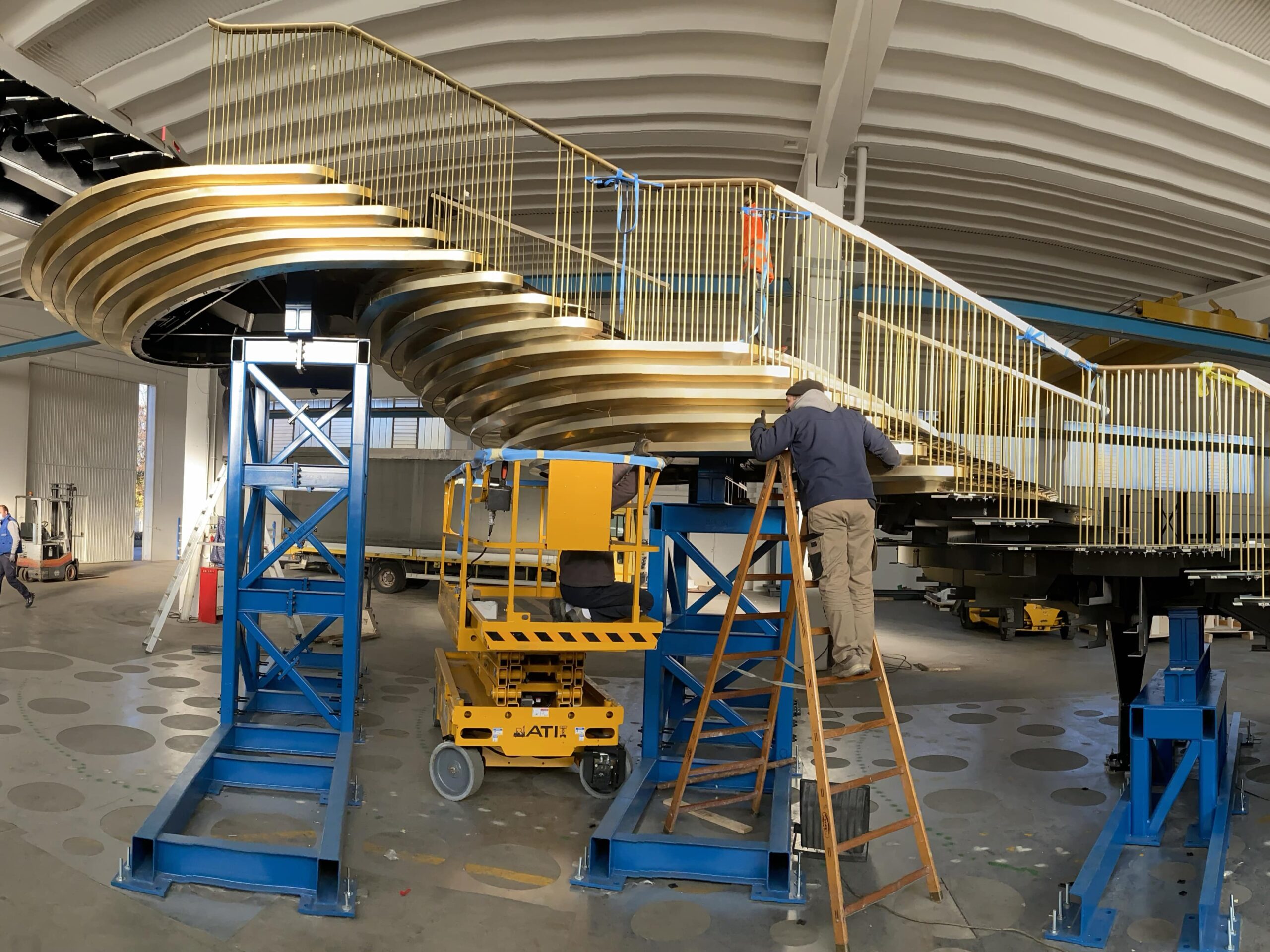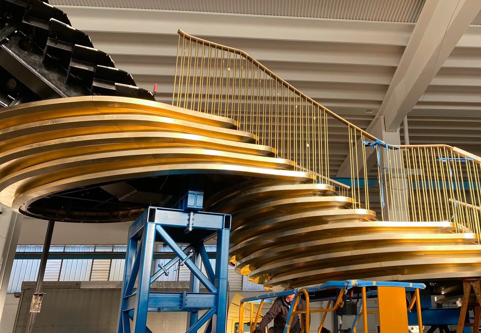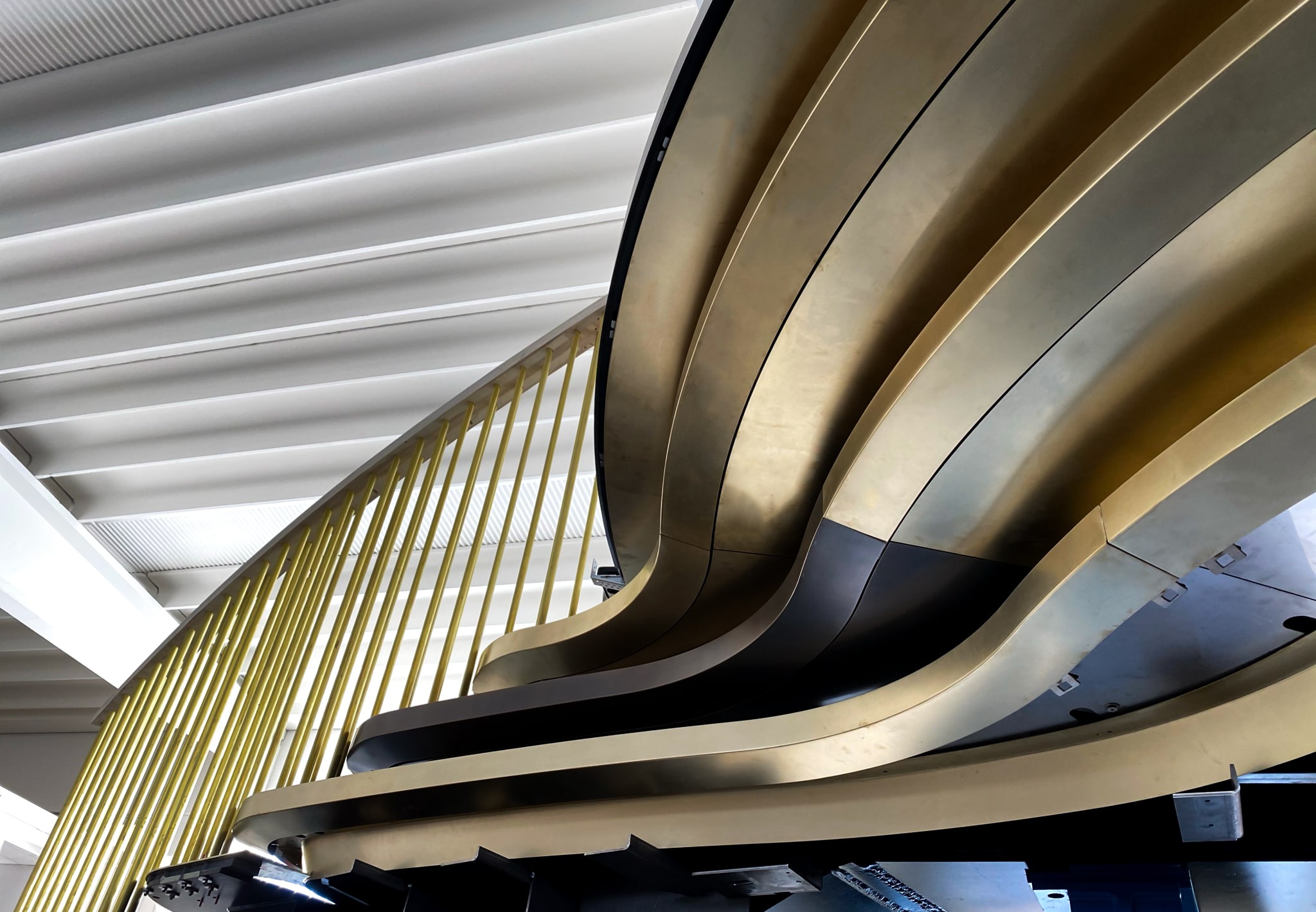Per questo progetto, realizzato in partnership for Cimolai, Lamparredo ha collaborato nell’ingegnerizzazione e produzione di vari elementi tra cui i banconi reception delle lobbies d’ingresso, la parete di pinne frangisole, i rivestimenti delle scale mobili e il rivestimento in bronzo della scala ornamentale, capolavoro architettonico.